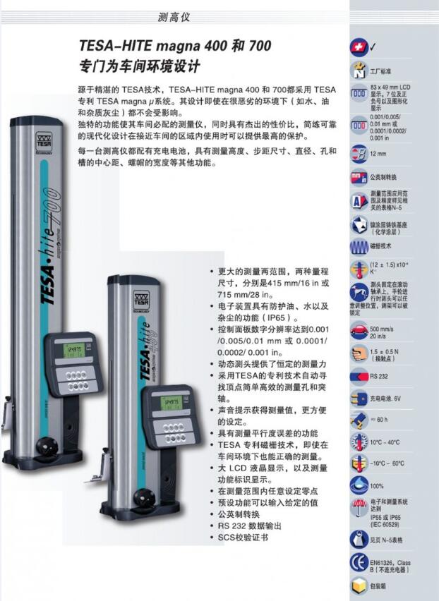 產(chǎn)品簡(jiǎn)介 product presentation 商品名稱 瑞士 TESA 高度 儀 型號(hào) TESA-HITE MAGNA 400/700 測(cè)量范圍 0-415/715mm 分辨率 0.001mm 供 應(yīng) 商 佛山市精測(cè)計(jì)量?jī)x器設(shè)備有限公司 產(chǎn)品概述 product presentation TESA......